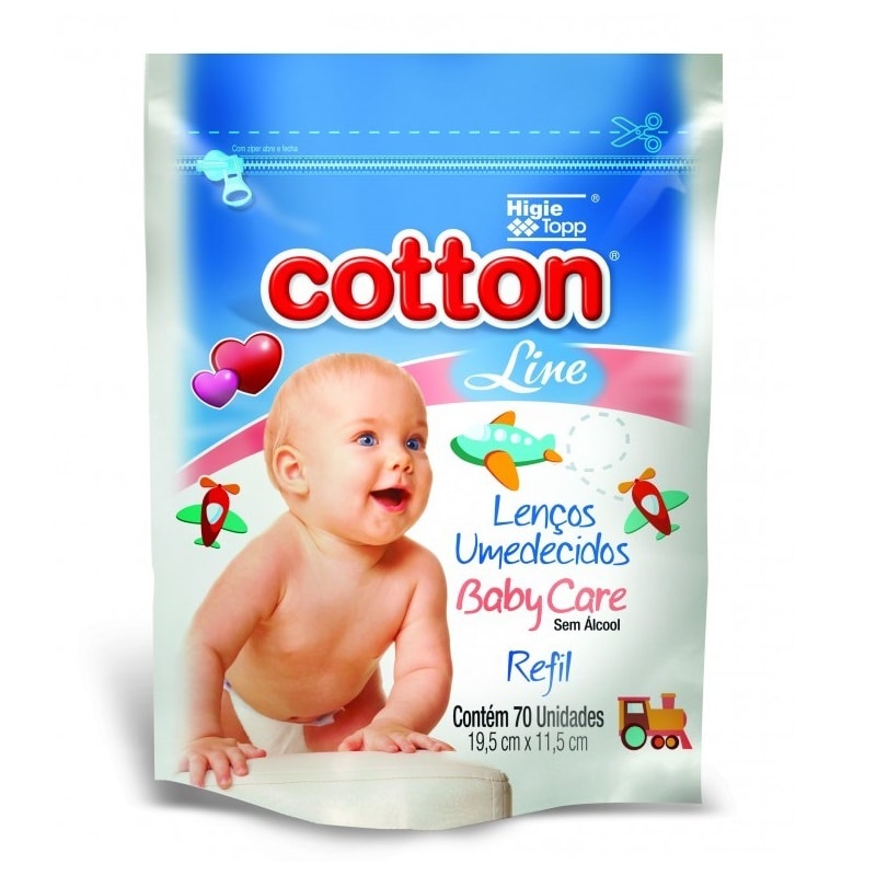 Lenços Umedecidos Cotton Line Baby Care 70 Unidades Refil Lojaslivia