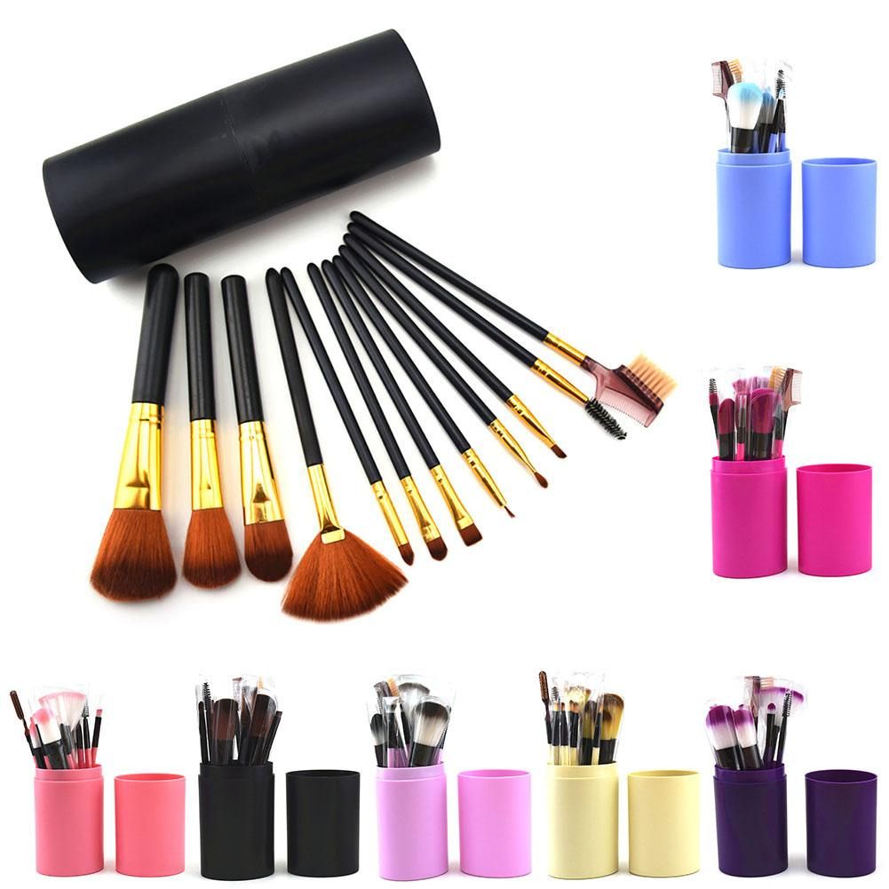 12 Pcs Pro Maquiagem Cosméticos Escova Kit Caso Suporte De Copo