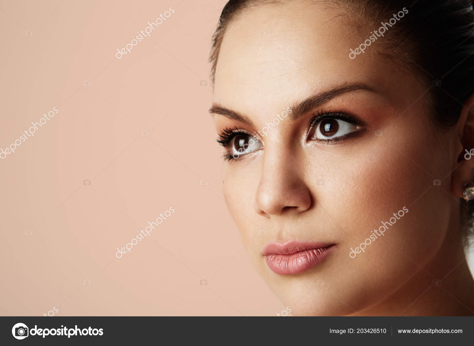 Retrato De Uma Bela Mulher Com Grandes Olhos Castanhos E